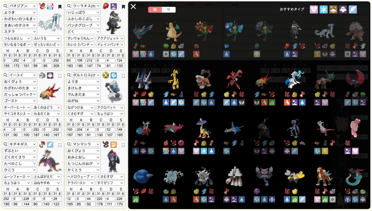 使用率上位のポケモンのうち、今のパーティが苦手とする相手をハイライトできます。